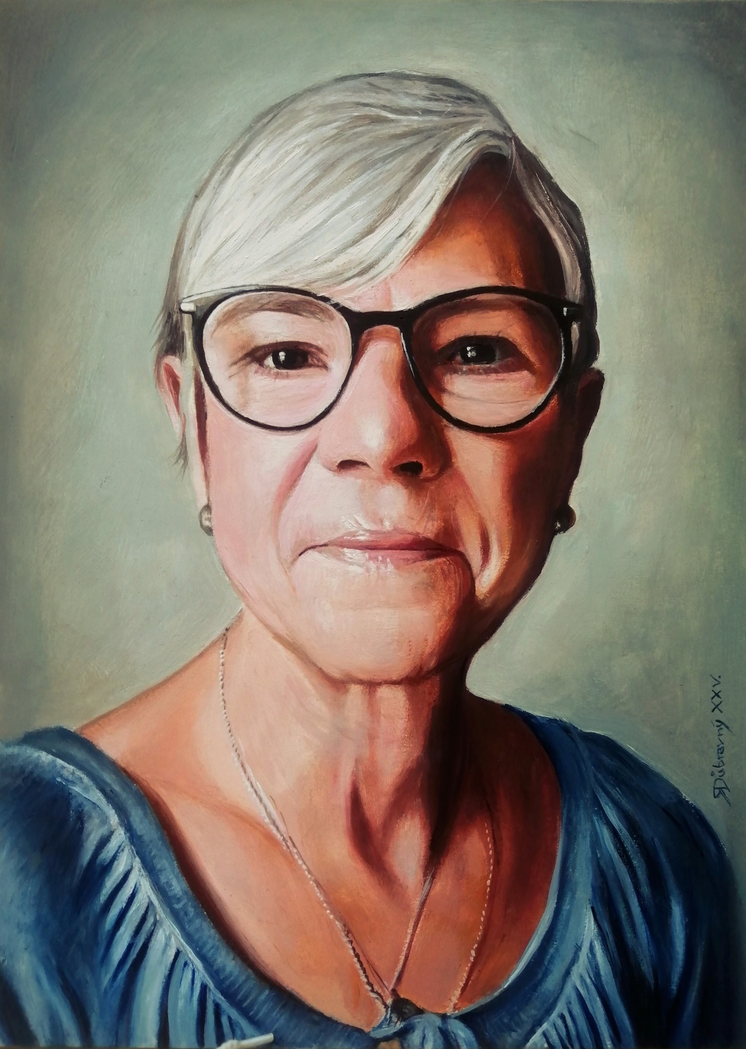 Portrét Vlaďky Vlaďka, 2025, olej na kartoně, 37x27cm, soukromá sbírka Vlaďka, 2025, oil on cardboard, 37×27 cm, private collection