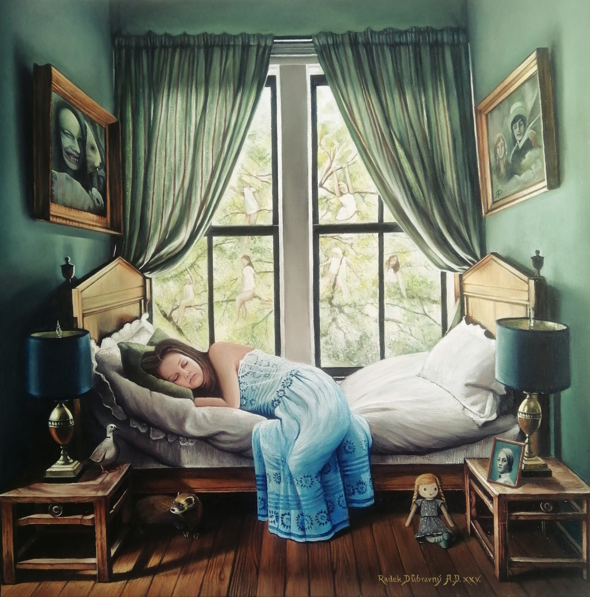 Valerie a týden divů Valerie a týden divů, 2025, olej na plátně, 80×80 cm. Obraz je k dispozici Valerie and Her Week of Wonders, 2025, oil on canvas 80×80 cm. For Sale Volně inspirováno stejnojmenným filmem Jaromila Jireše z roku 1970 a dílem Vítězslava Nezvala.